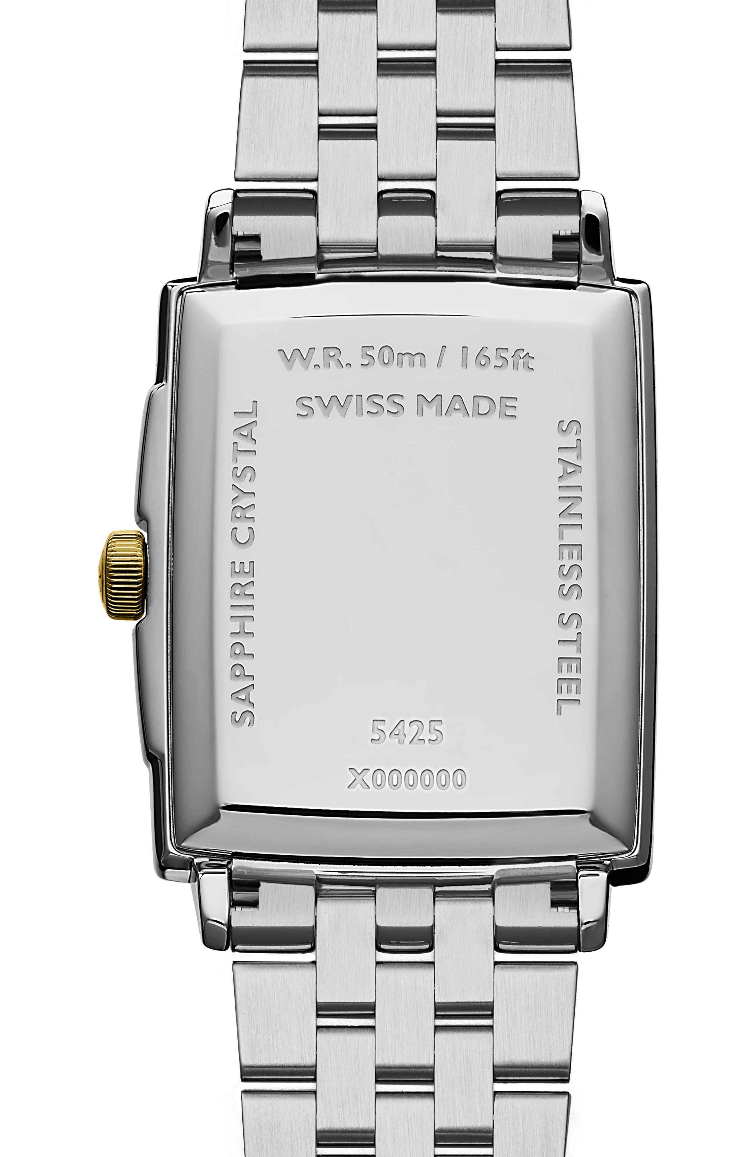 Equipped with a quartz movement, this toccata men’s classic two-tone white dial watch features a rectangular sleek stainless steel case with yellow gold PVD plating, a 3-o'clock date window and a sophisticated white dial punctuated with Roman numeral markers to add a touch of warmth to this modern classic.